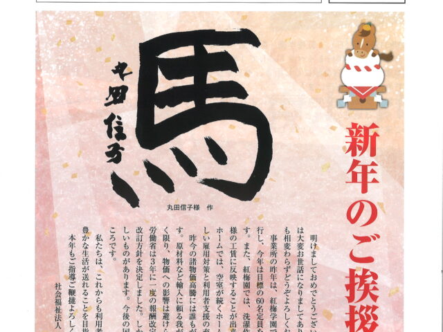 新年あけましておめでとうございます。 2026年1月1日発行の紅梅だより第89号より、土屋理事長の年頭のご挨拶です。 本年もどうぞよろしくお願い申し上げます。