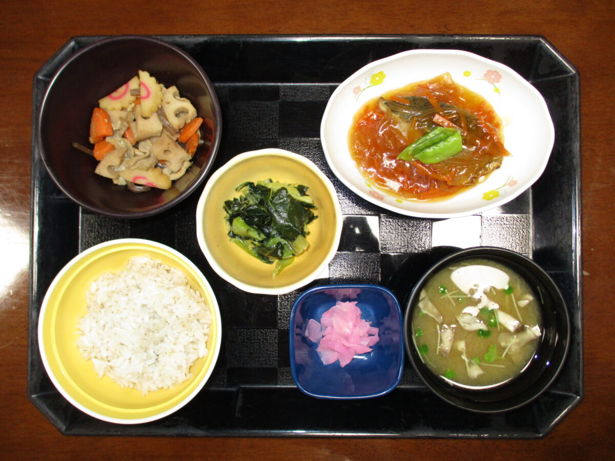 🌸学園ごはん-32🌸1月29日の夕食はアジ甘酢あんとレンコン炒めです。