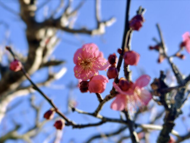 紅梅会の梅🌸開花のお知らせ 2026年1月11日 紅梅学園の梅の花が咲き始めました! 昨年より少し早いですが、すでに10輪ほど咲いています。 周りの蕾もふっくらしていて、梅の花でいっぱいになるのが楽しみです🌸