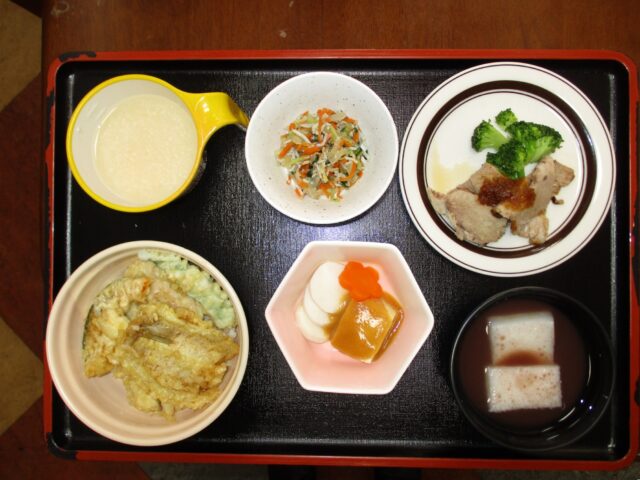🌸学園ごはん-31🌸1月14日のイベント食は天丼です。 2026年1月14日 「天丼が食べたい」という利用者の方のリクエストメニューです。 天丼にはエビが付き物ですが、今回はキスをメインに他、野菜が4種類とボリュームがありました。 キスは、脂質が非常に少なく、水分が多い白身魚ですが、 うまみ成分で 続きを読む