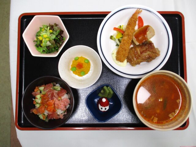 利用者の方の好むものが多いですが、彩り良く、野菜も摂れるよう スープや手作りピクルスもメニューに付け加えました。 新型コロナウイルス等の影響で、職員と共に食事をするという機会が中々なかったのですが、 今回は職員も一緒に食 続きを読む